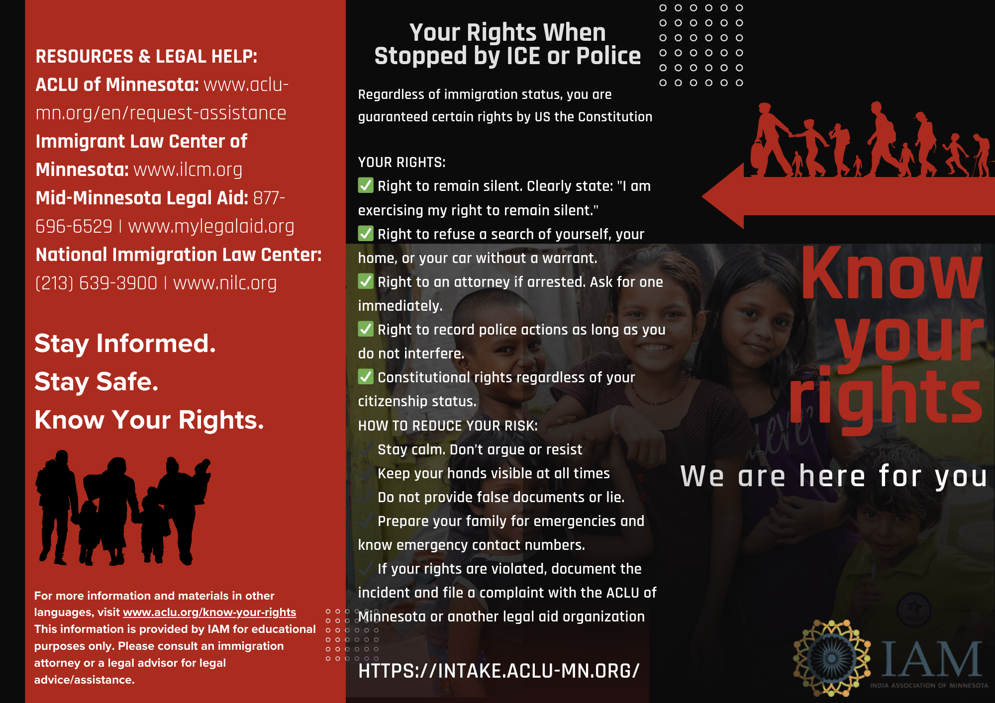 We have created 9 different scenarios that might be applicable to you or your family members. These guides provide clear, actionable steps on how to handle various interactions with law enforcement and federal agents. The scenarios covered are – International Students, Lawful Permanent Residents, Immigrant Workers, U.S. Citizens, Business Owners, Refugees, U&T Visa Holders, U.S. Visitor Visa and Asylum Seekers Guide.